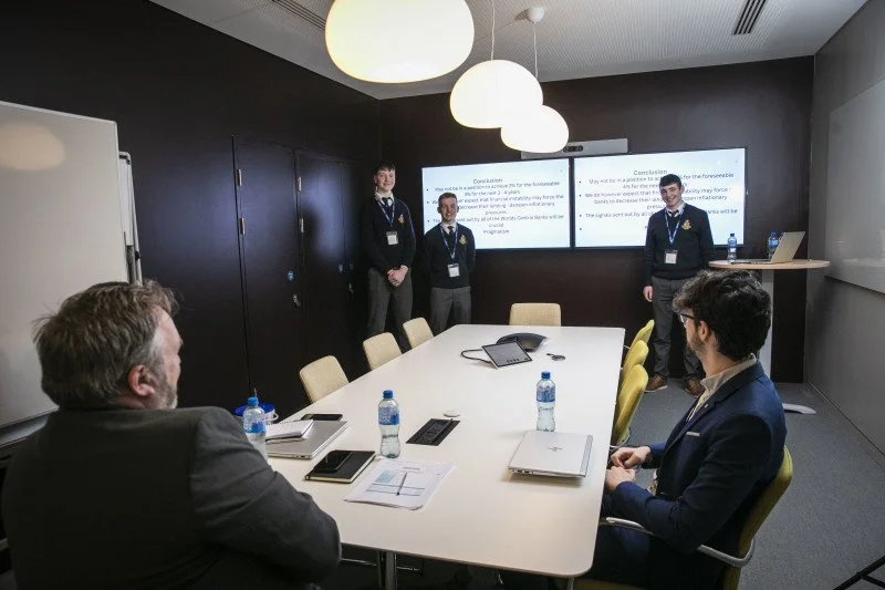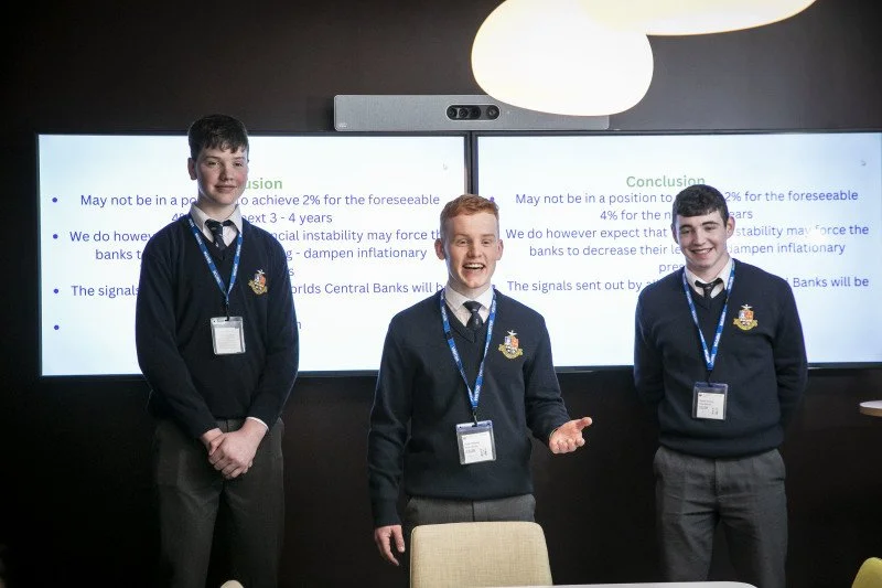 On Tuesday March 28th three Rockwell College students won the Generation Euro Award. They did this by presenting and justifying their predictions for the ECB refinancing rate at the end of December 2023. They presented to three senior economists in the Central Bank and were questioned about their research. In total their presentation took over 45 minutes.